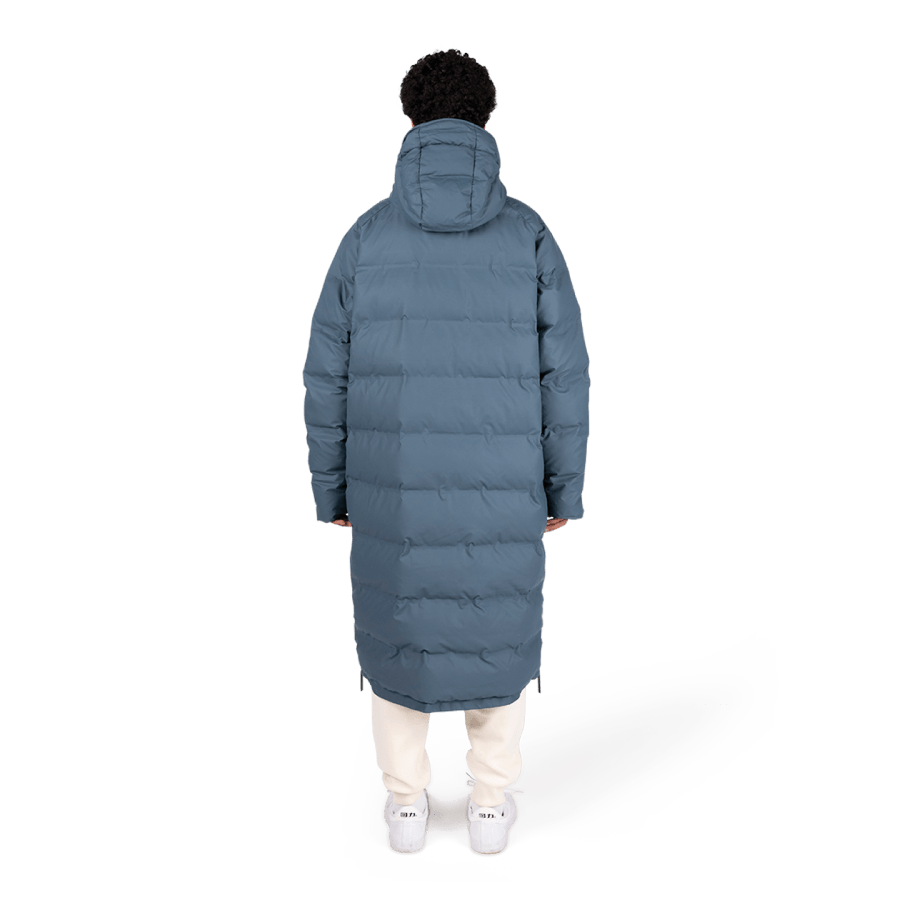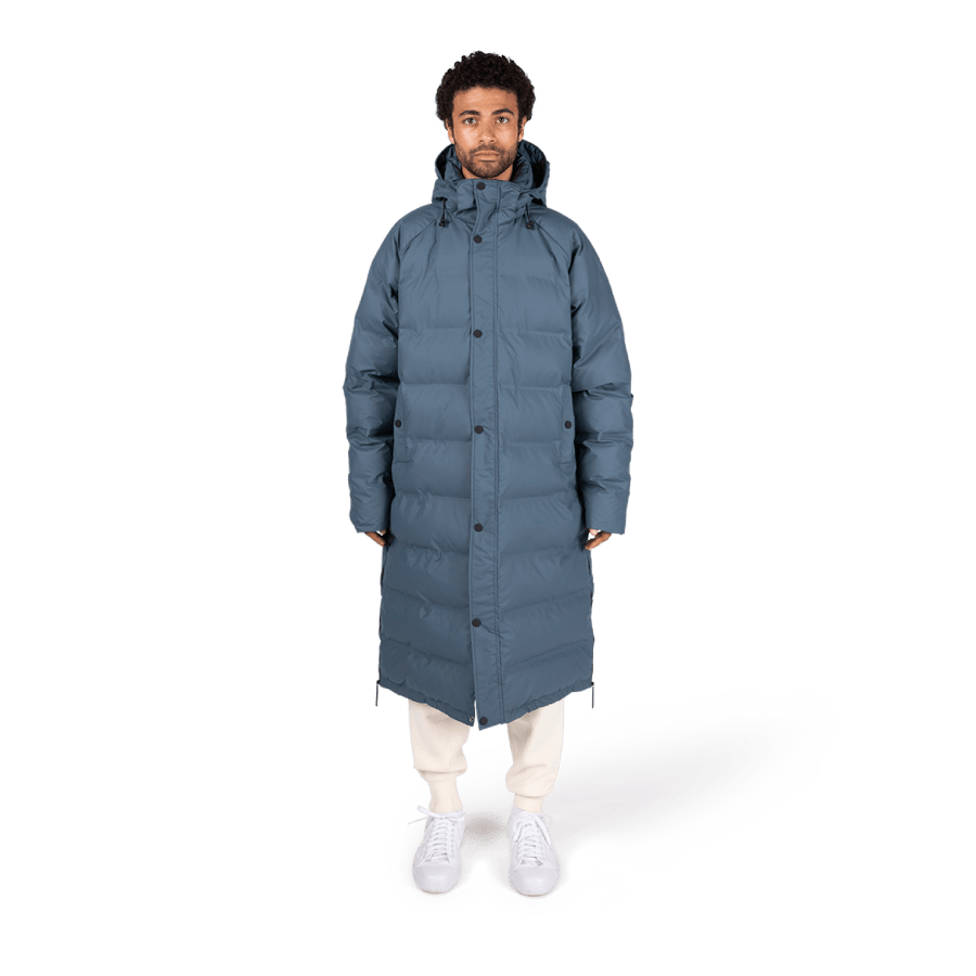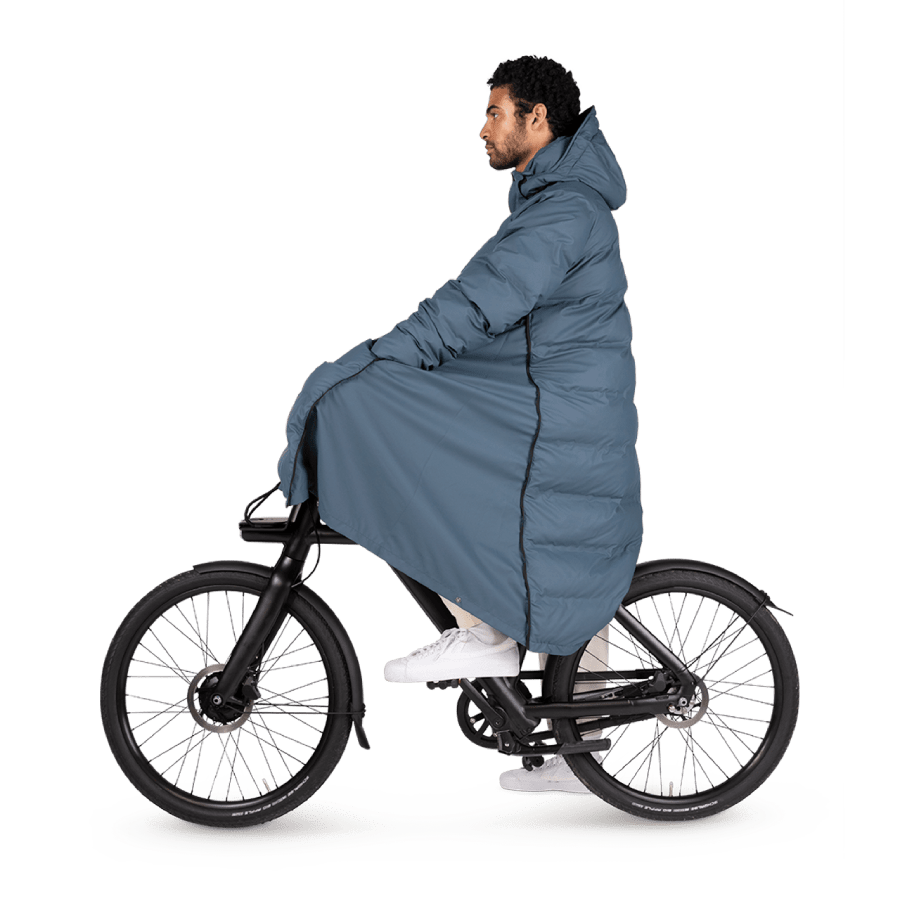 The oversized Maium Puffer is a fully waterproof winter coat. Easily transforms into a poncho for bike or scooter. Made from 99 recycled plastic bottles. Yes, this coat is vegan – both fabric and padding are produced from recycled PET. Animals collectively agree on the creation of this coat. Designed and tested by bad weather experts. Makes you look hot on a rainy winter’s day.