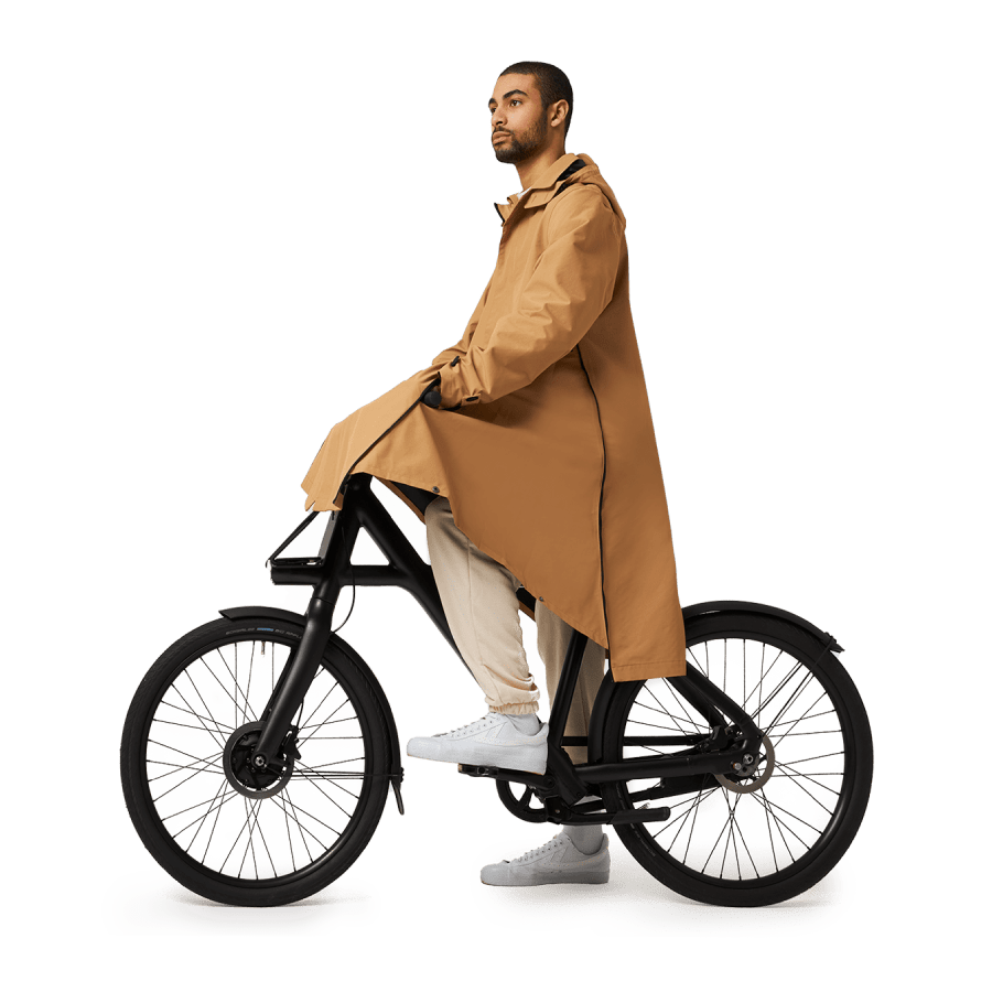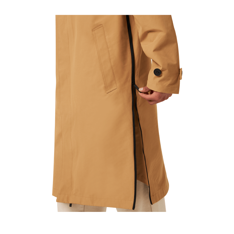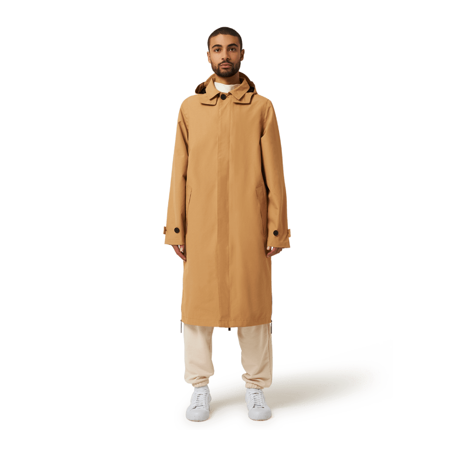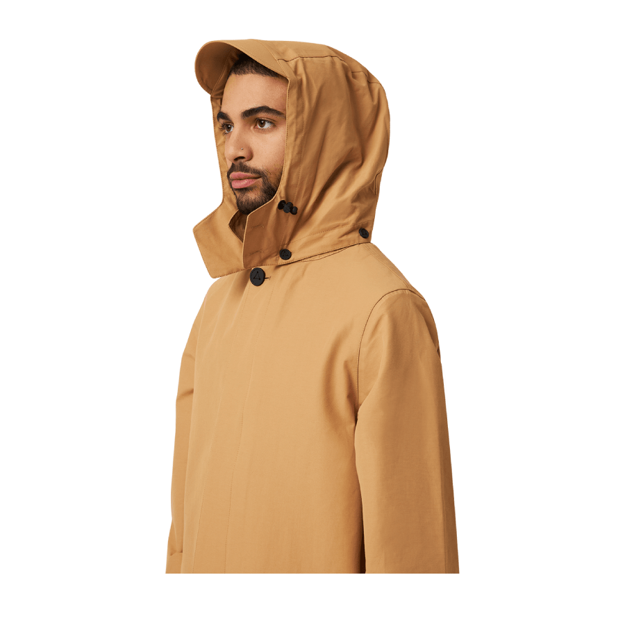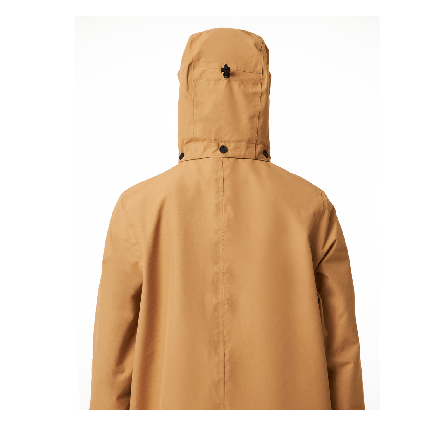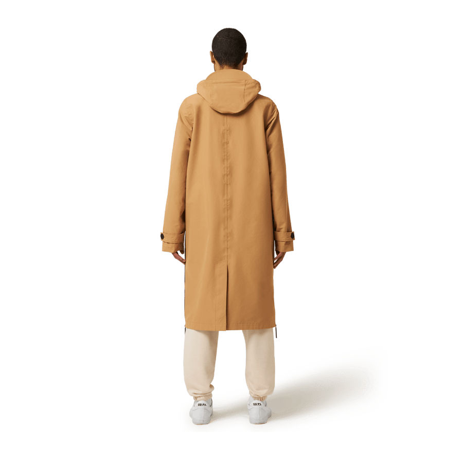 The Maium Mac Coat is a fully waterproof raincoat designed for movement. Inspired by the traditional Macintosh coat from 1824, the first true waterproof raincoat. A classic silhouette with a modern twist. Easily transforms into a poncho for bike or scooter. Made from organic cotton and 88 recycled plastic bottles. Designed and tested by bad weather experts.
