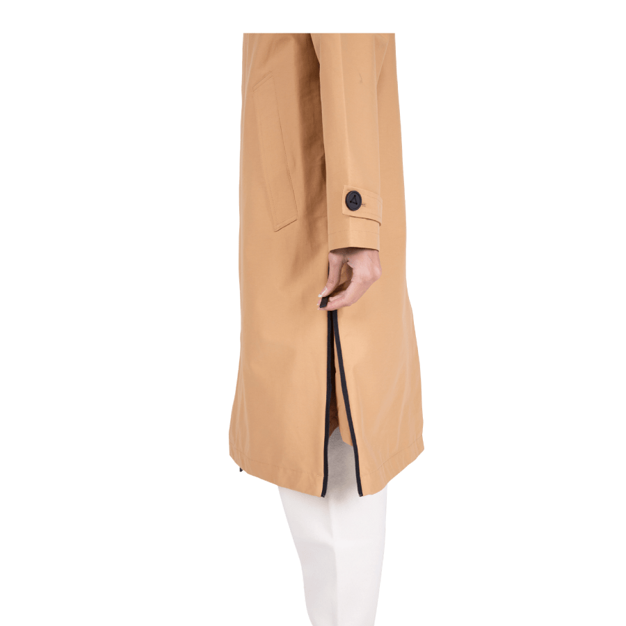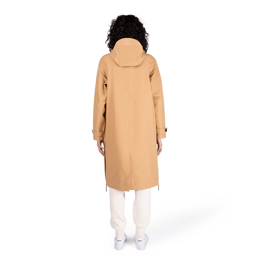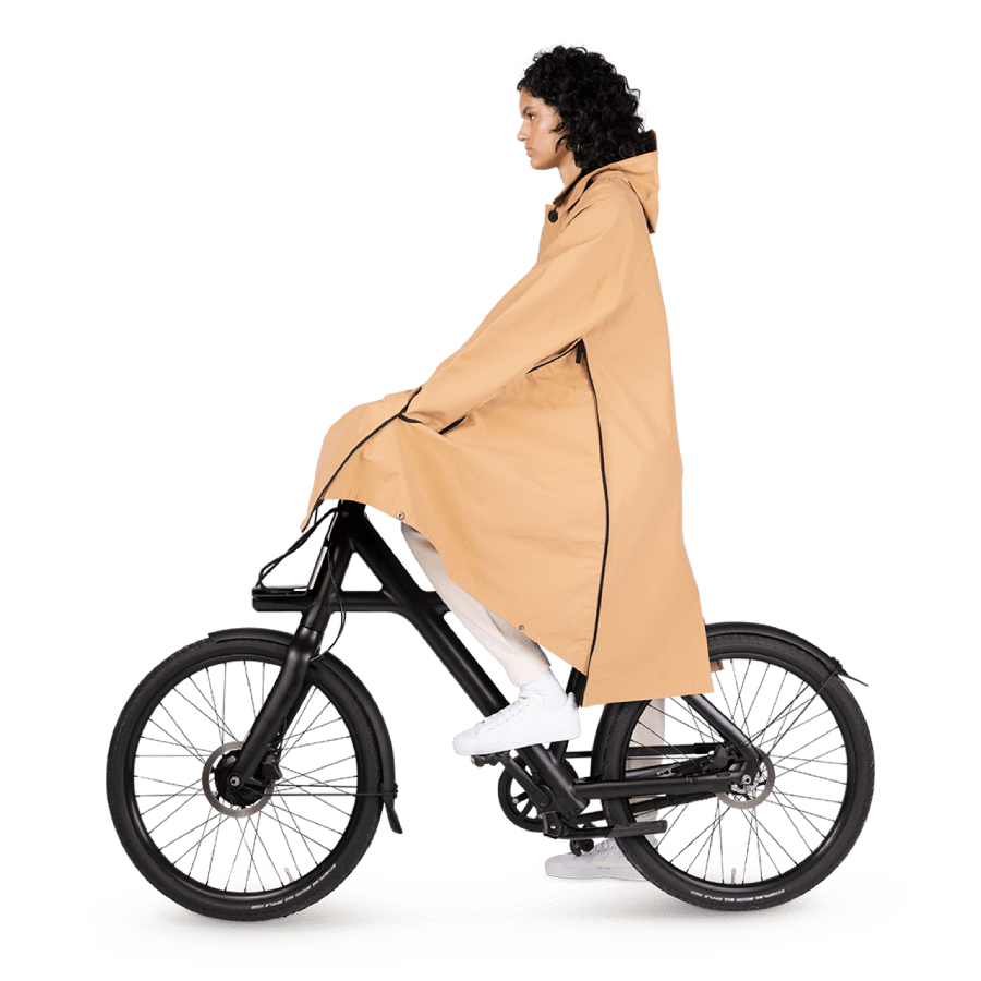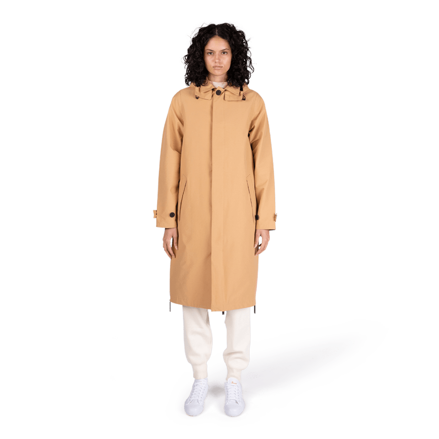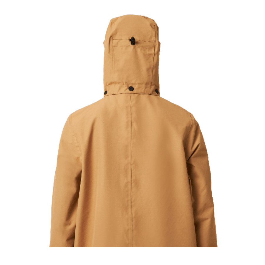 The Maium Mac Coat is a fully waterproof raincoat designed for movement. Inspired by the traditional Macintosh coat from 1824, the first true waterproof raincoat. A classic silhouette with a modern twist. Easily transforms into a poncho for bike or scooter. Made from organic cotton and 88 recycled plastic bottles. Designed and tested by bad weather experts.