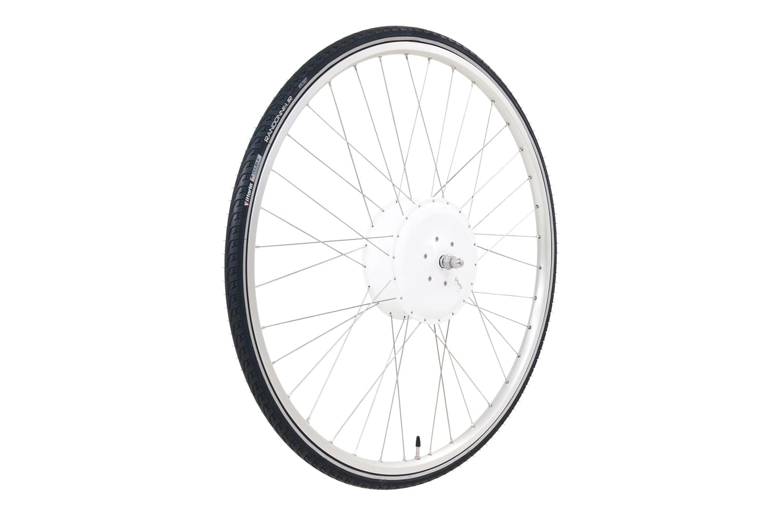 Driiven Smart e-bike wheel already assembled and fitted to a 28″ double walled, alloy rims, along with a bicycle tube and 37-622 (700x35C) black city / trekking tire.
