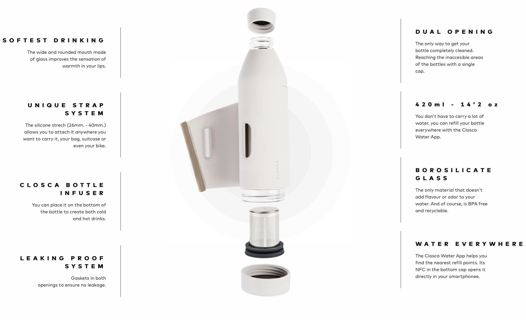 The NFC chip located at the bottom opens the Closca Water App directly on your phone so you can find the nearest water recharging points.