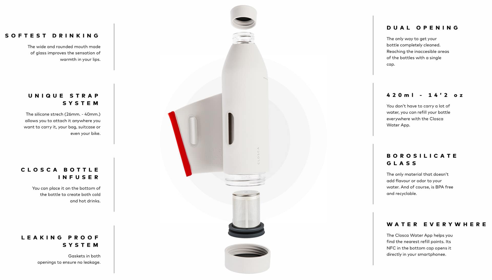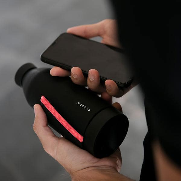 The NFC chip located at the bottom opens the Closca Water App directly on your phone so you can find the nearest water recharging points.