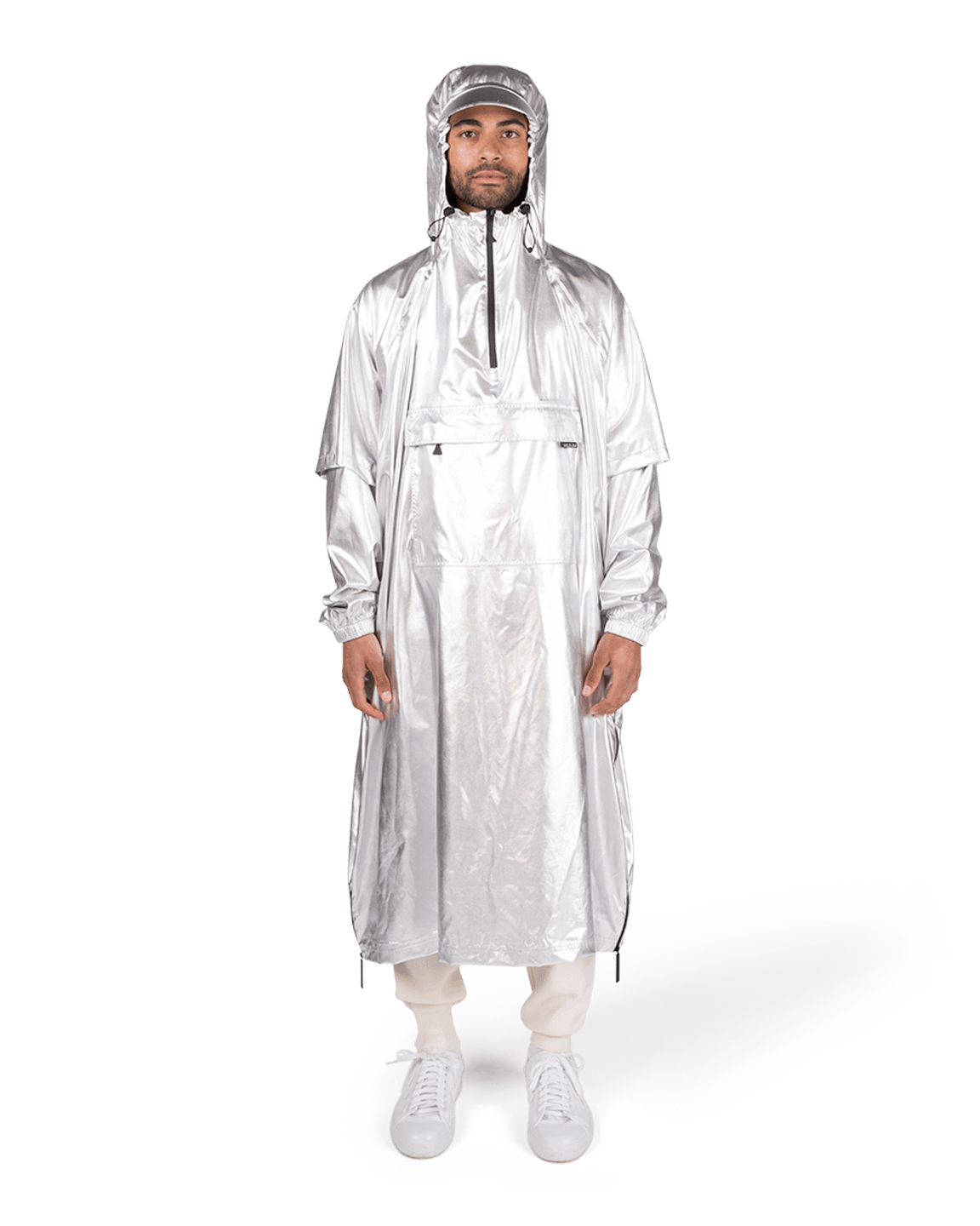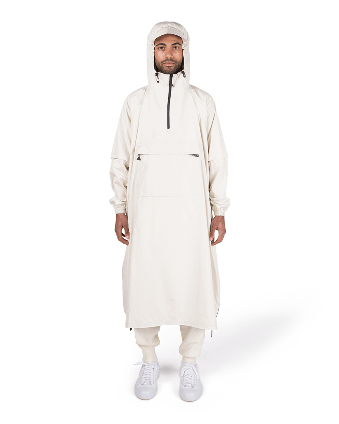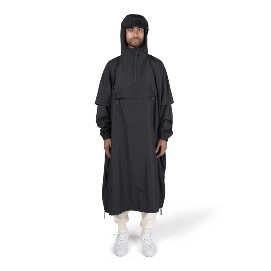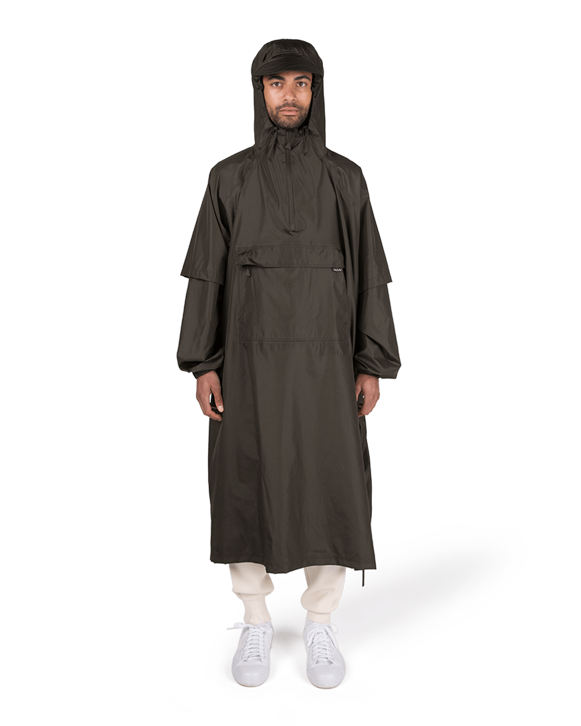The Maium Rain Poncho is a fully waterproof summer shell, an extra waterproof layer always at hand. This raincoat easily folds into the built-in pouch. Easily transforms into an even bigger poncho for use on bike or scooter. Made from 77 recycled PET bottles. Designed and tested by bad weather experts.