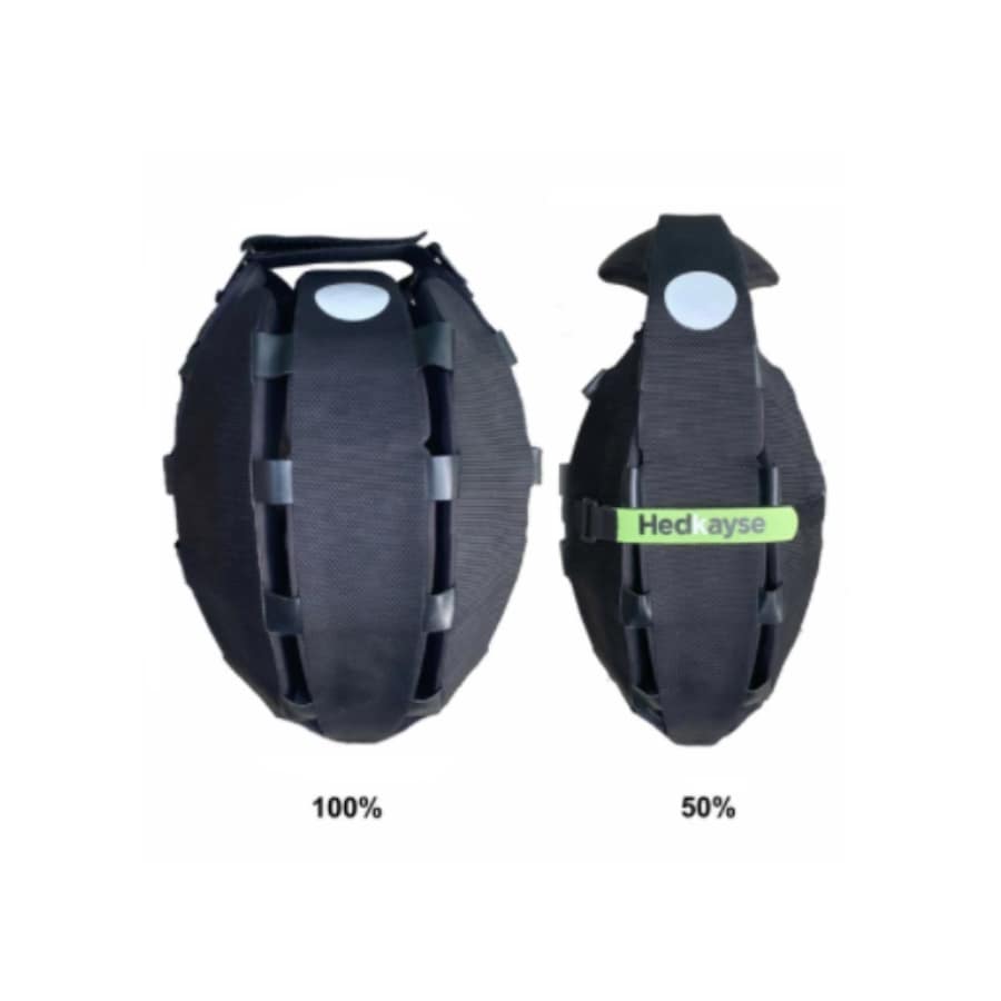 Supplied with a branded WrapStrap. Our Patented folding helmet design reduces the width of the Driiven x Hedkayse | ONE by 50% fitting easily into your bag.