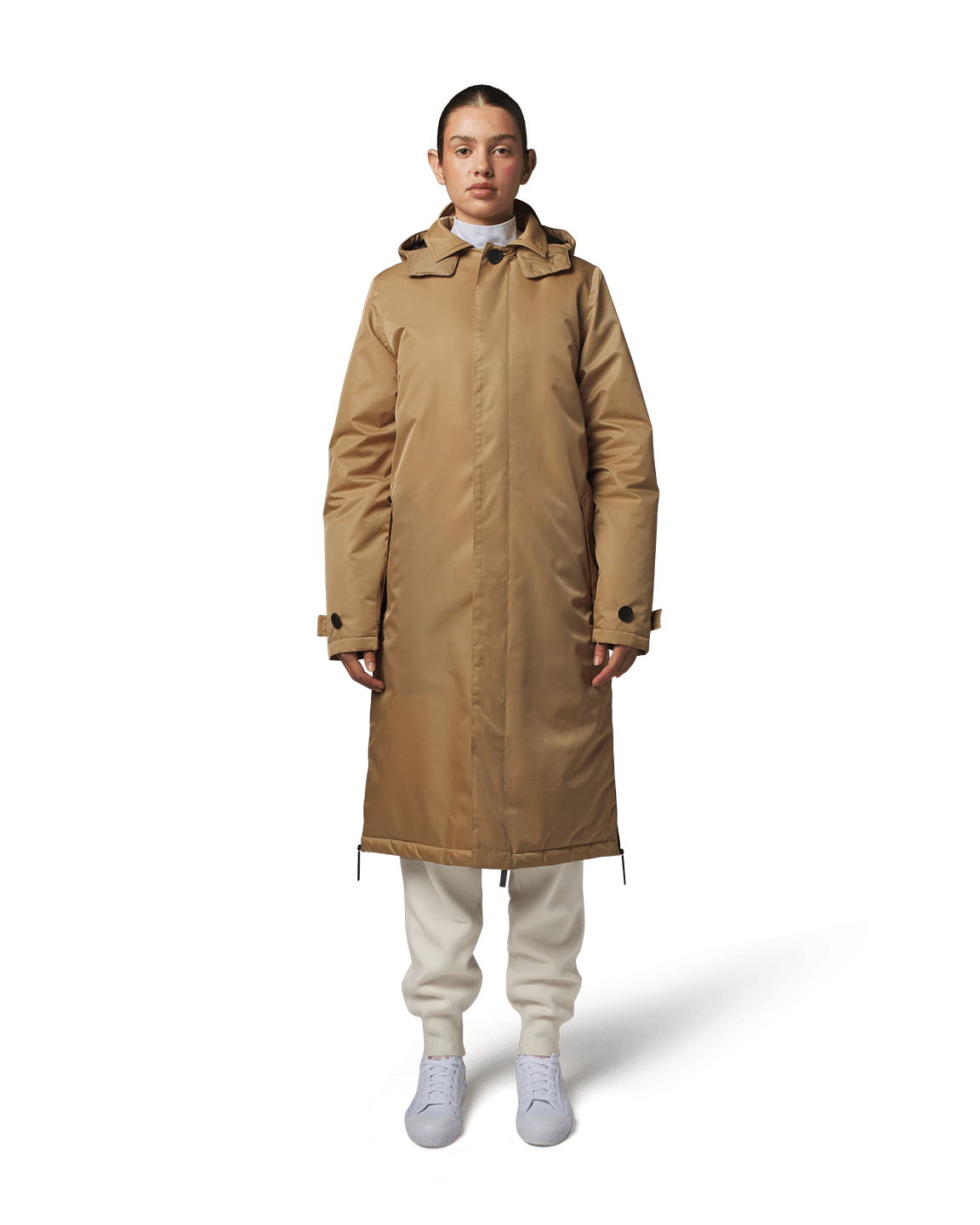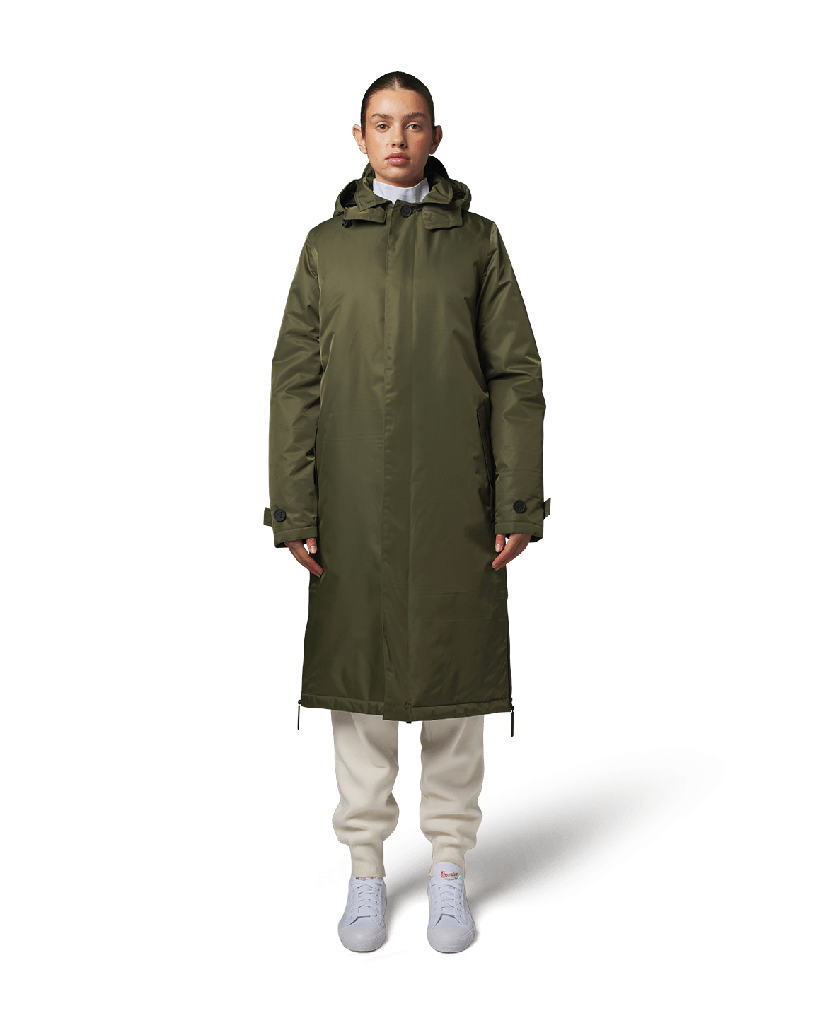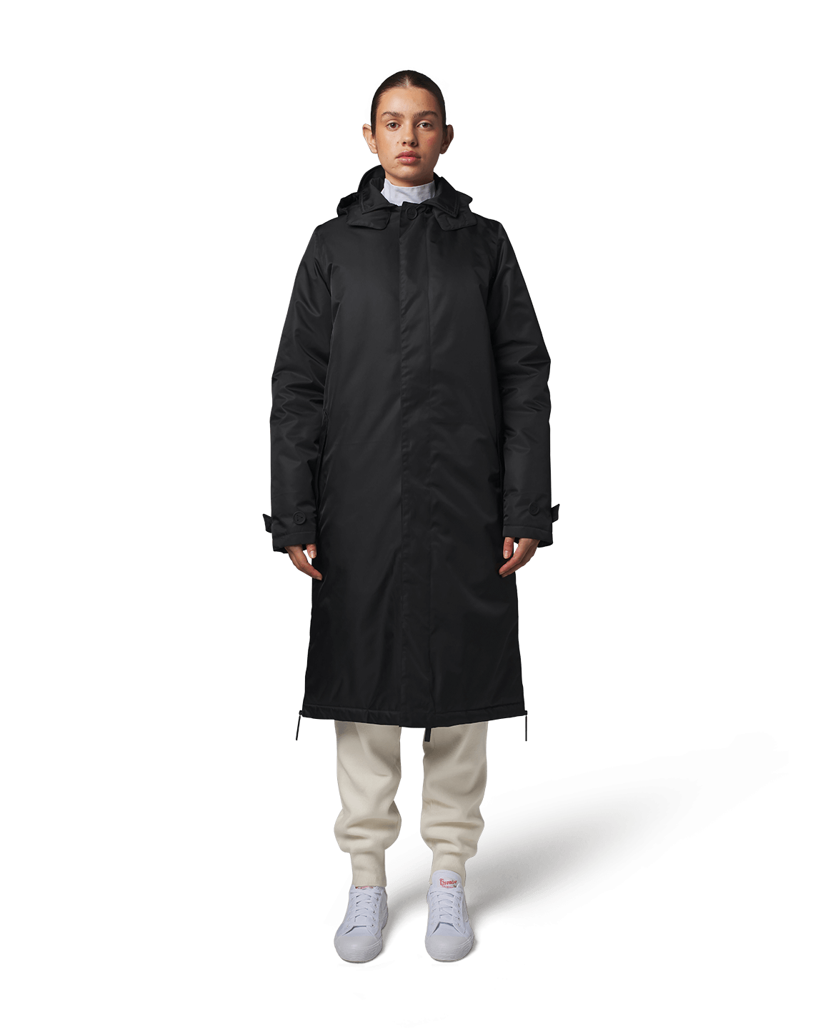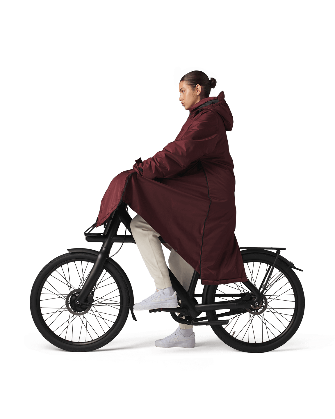The Mac Padded is a fully waterproof raincoat designed for movement. Inspired by the traditional Macintosh coat from 1824, the first true waterproof raincoat, with an extra warm layer. A classic silhouette with a modern twist. Easily transforms into a poncho for bike or scooter. Made from 88 recycled plastic bottles. Designed and tested by bad weather experts.